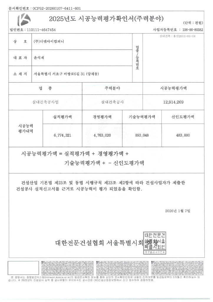 시공능력평가확인서
