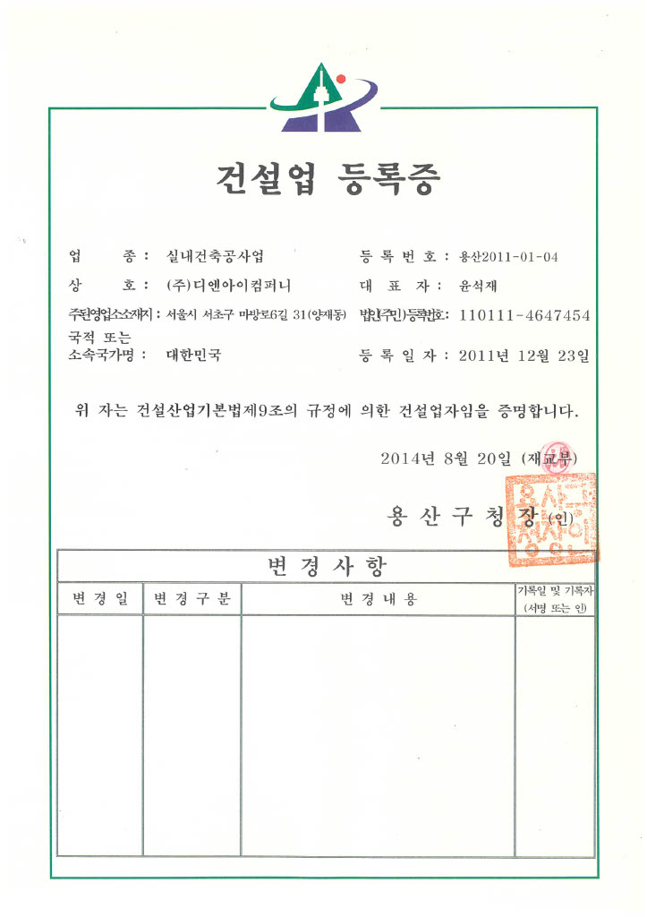 종합건설업등록증